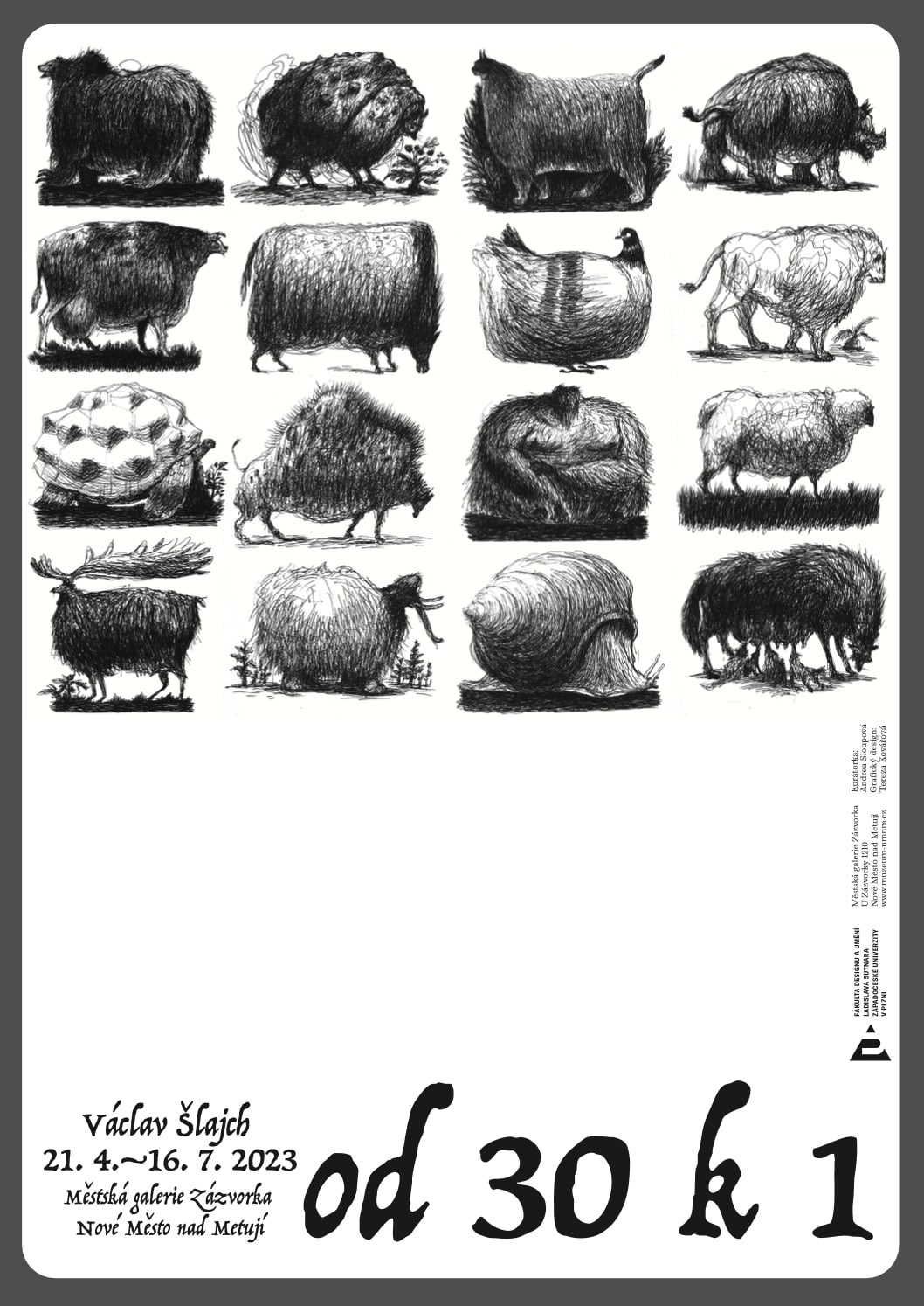 Propagace k výstavě Od 30 k 1 ilustrátora Václava Šlajcha
